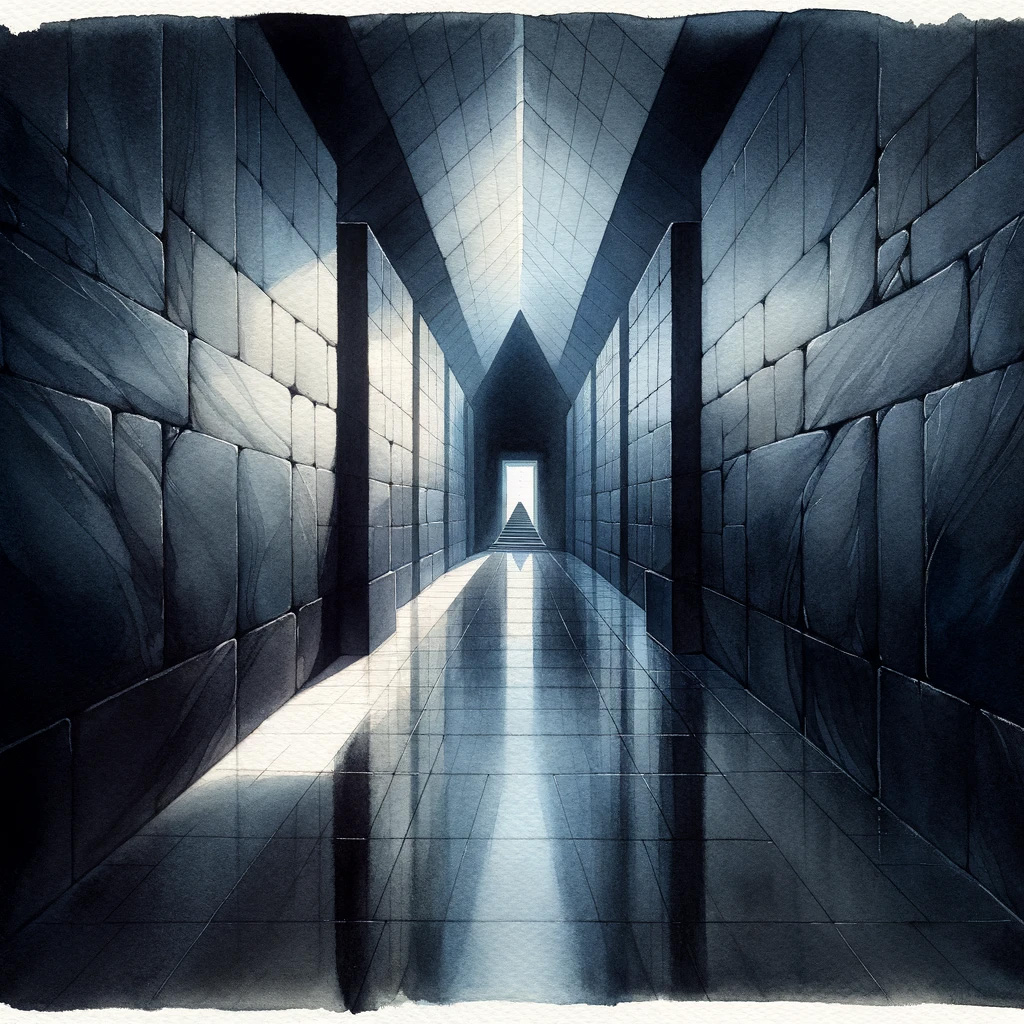 Ok. Thankyou. The black pyramid is well a long dark corridor with high walls and ceilings and very narrow, the only light is at the end where the first door is. I walk through the first door into one of the terrains.