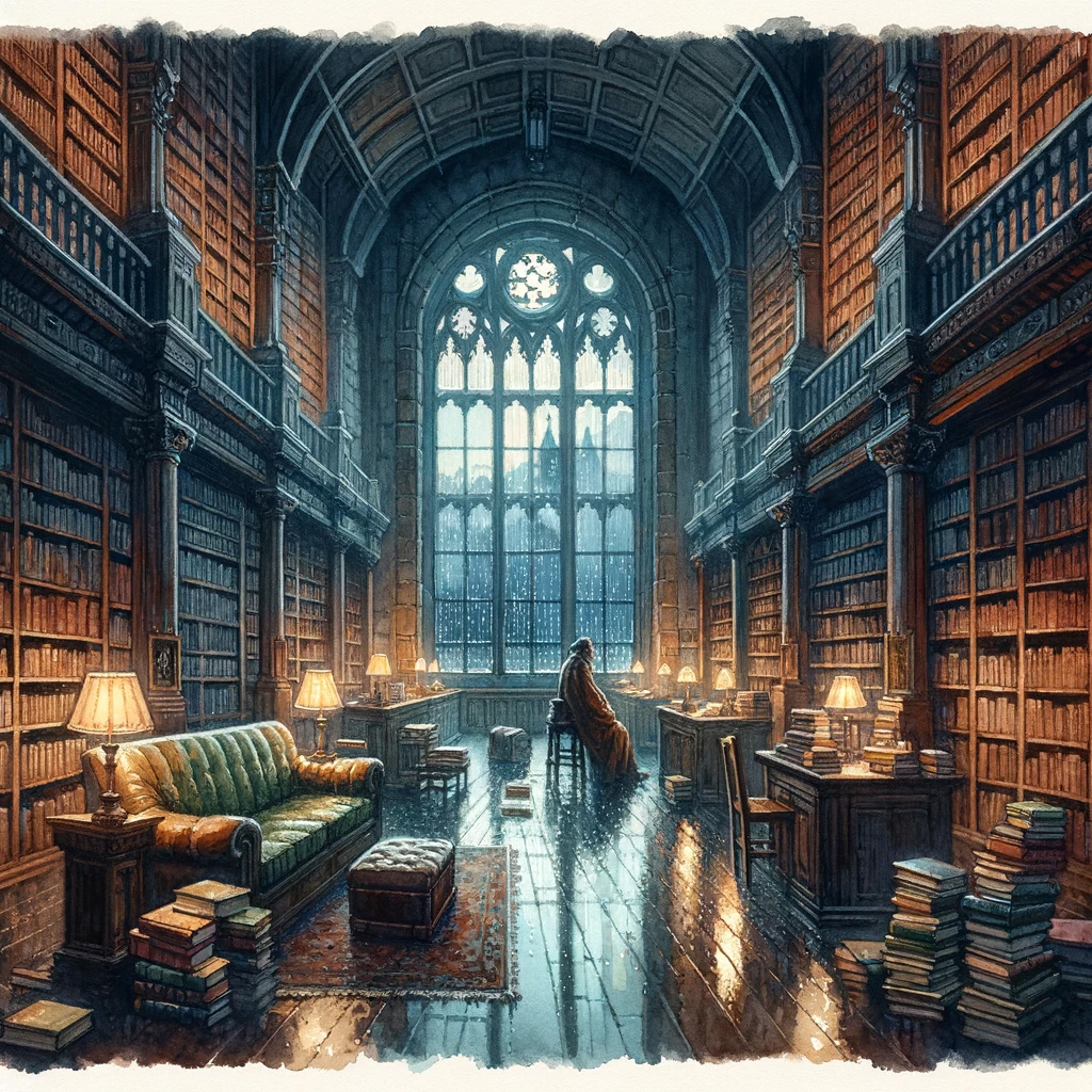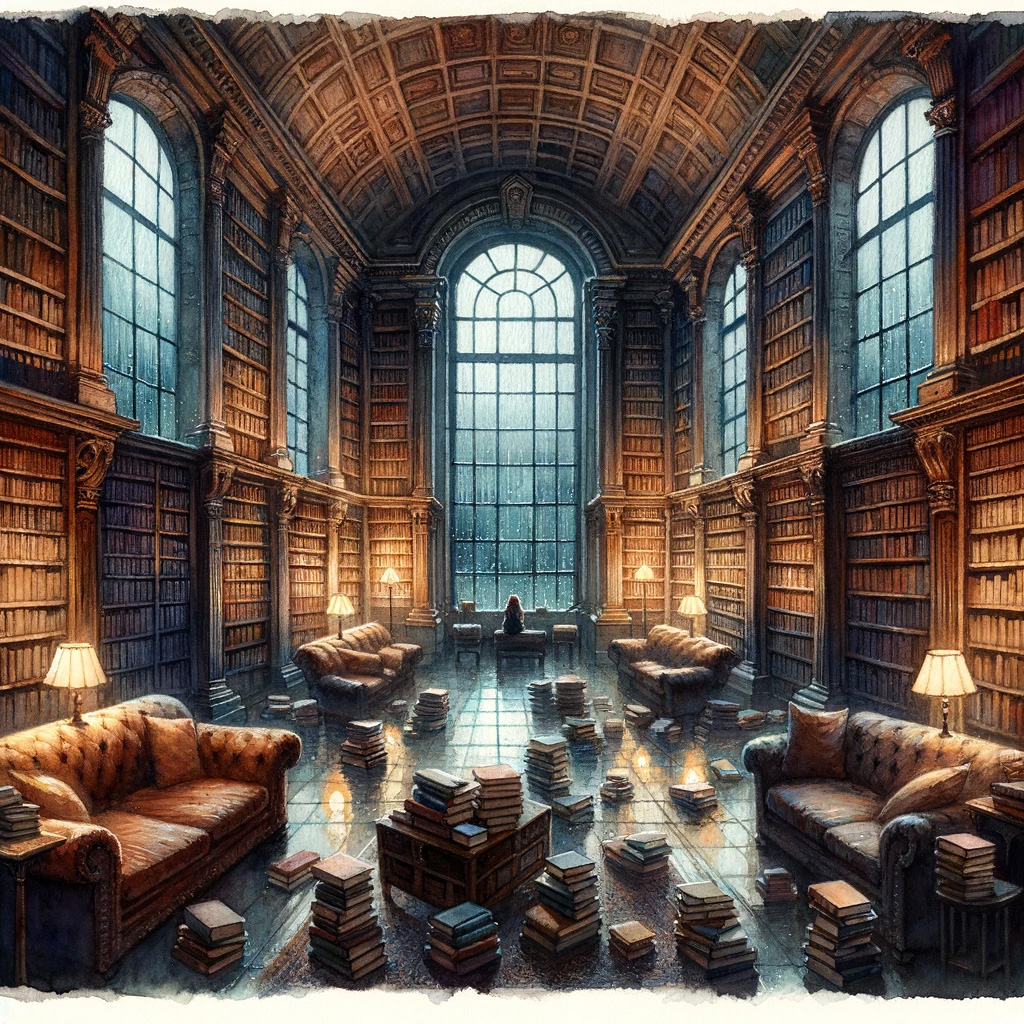 My inner temple is odd thinking on it , I start in my black obsidian crystal pyramid, get to several doors and walk through either into a rocky terrain, or stormy sea (always with Loki) and of course itās raining! The only room Iāve constructed to get out of the rain is a library. A spirit library, I donāt have an AI drawing program but I found this picture on Google that kind of fits the library.