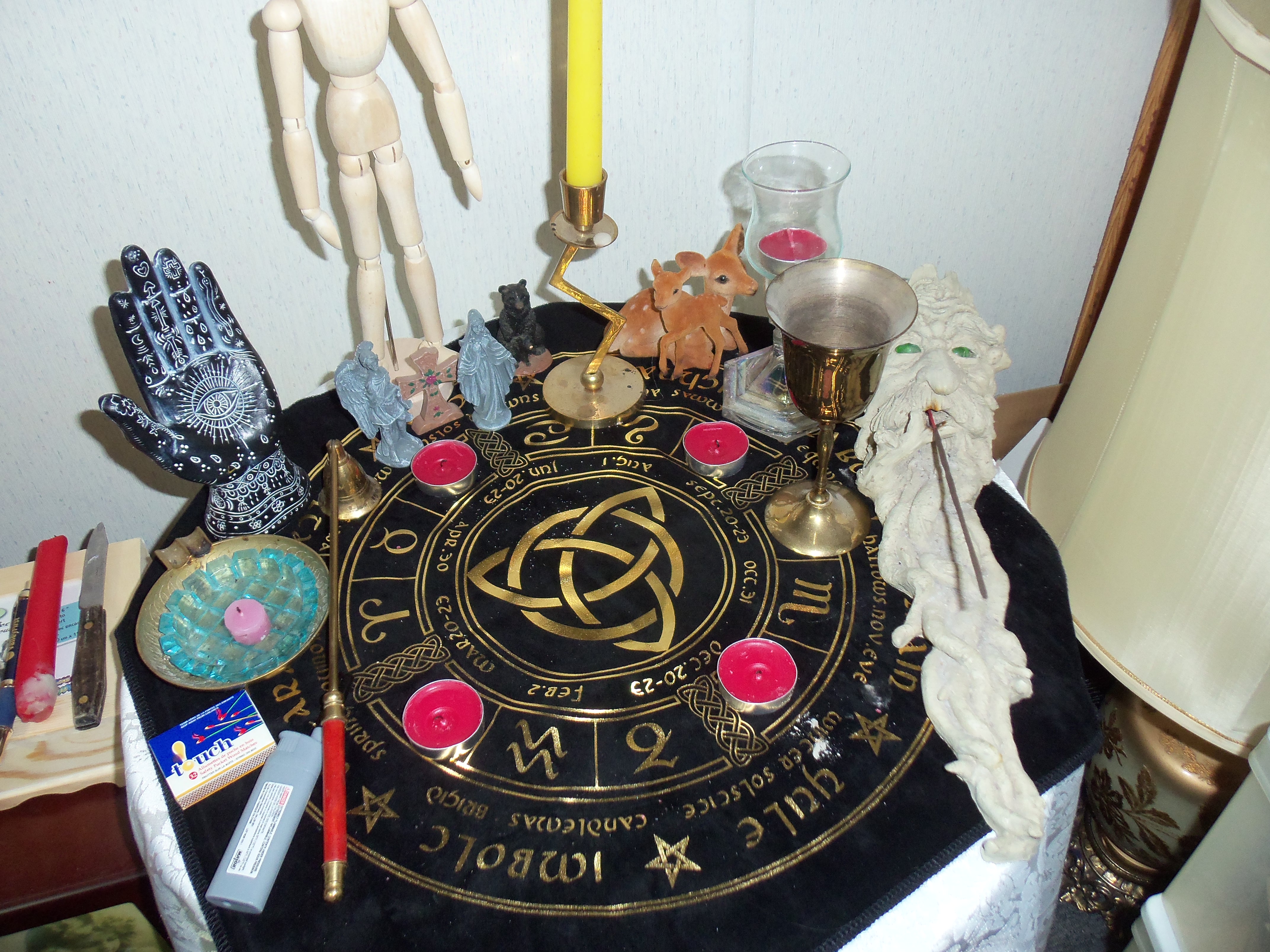 Nice job with the new altar cloth! I really like that solar/zodiac wheel