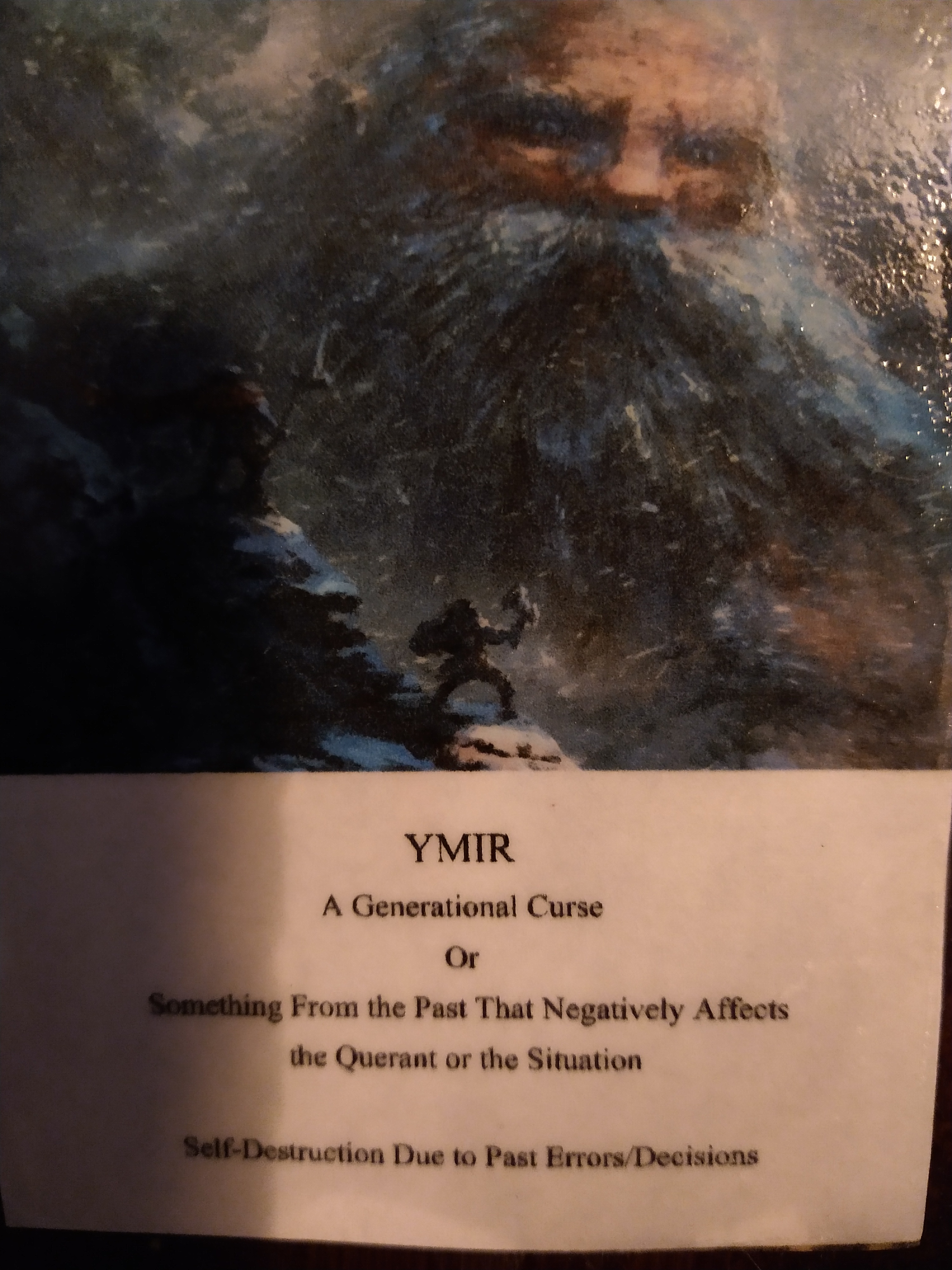 For me, I first decided what decks I had and what I found missing or requiring better clarification during reads. For example, Ymir clarifies that there’s a potential generation curse or hex involved, and Wolf provides a clarified timeframe and energy, Saturn portends hardships potentially leading to great benefits, and Blue Aura indicates healing, wisdom and the 606-668 frequency.