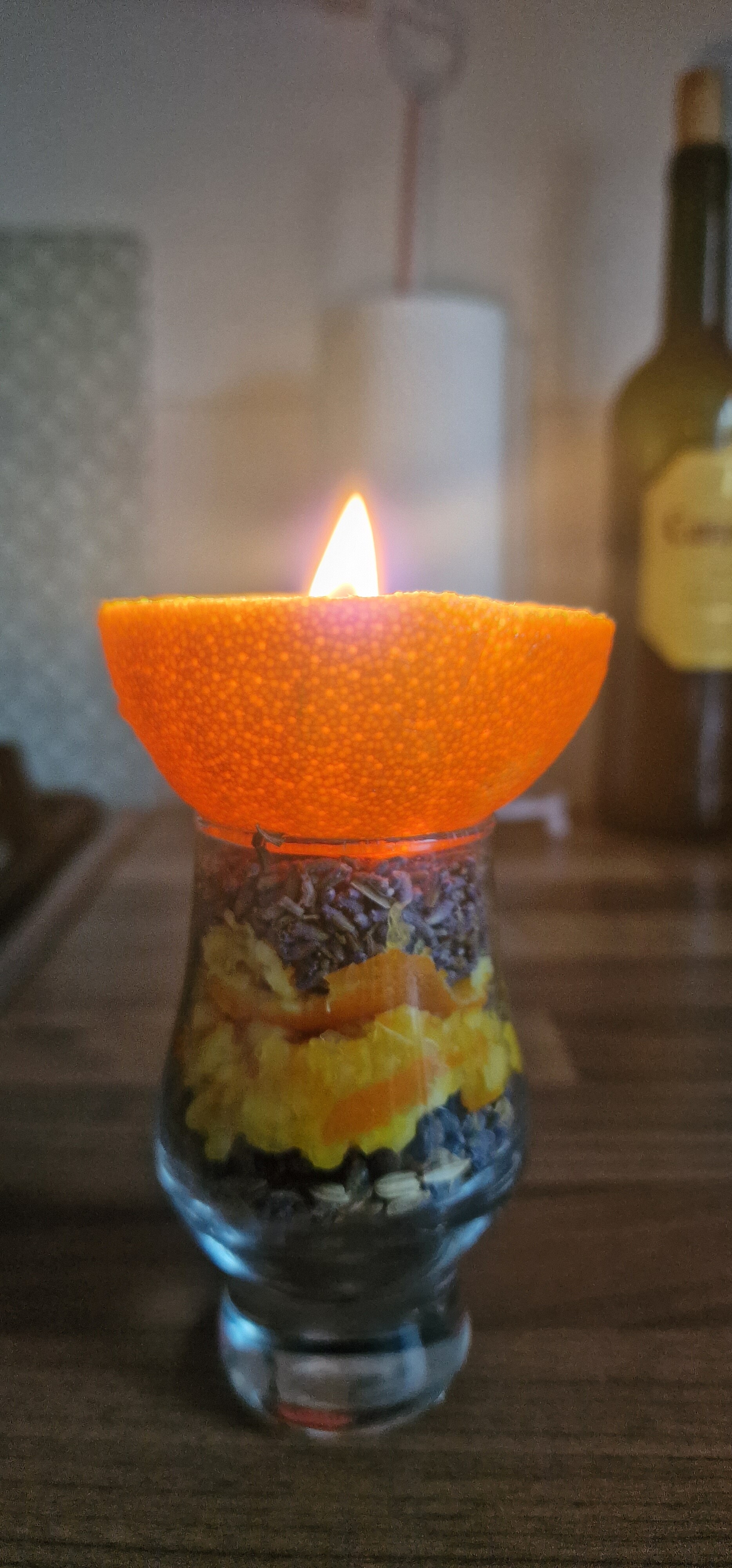 I can confirm that they orange candles DO work. I made mine in a small whisky glass (being from Scotland) and put a range of seeds in as i didnt have enough clove. It is now burning on my altar.