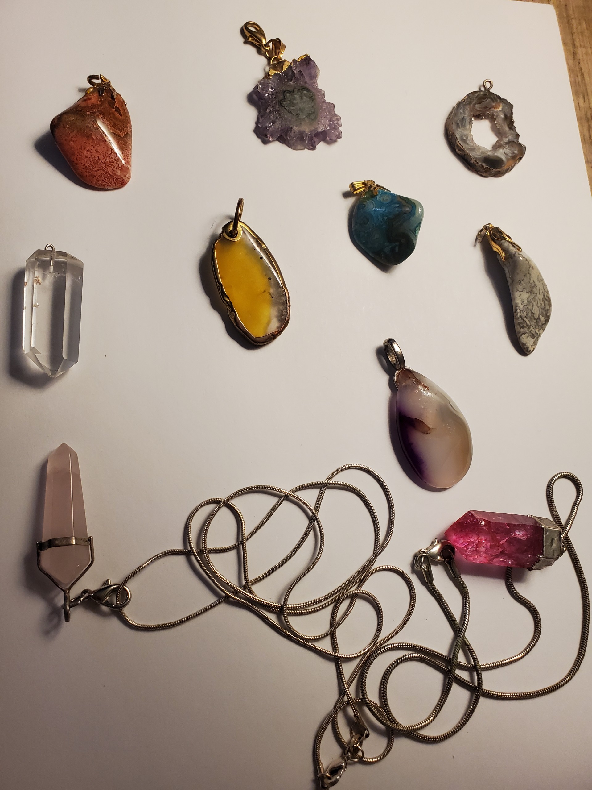 Hello everyone, I recently inherited a large group of if stone pendants and a few crystals but I am VERY new to using them and wondering if you lovely people can help identify them before I cleanse a use them.