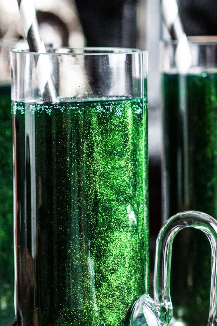 For the edible gold shimmer dust, serving it per glass is recommended so you always get the full effect of the swirling shimmer look. You can add it to the main punch container, but the shimmer dust will slowly settle at the bottom of the bowl, meaning the punch will need to be stirred often to stay distributed.