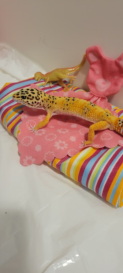 I forgot about Harry Spotter (I didn’t name him, he came with it)!!! He is my tangerine leopard gecko.
