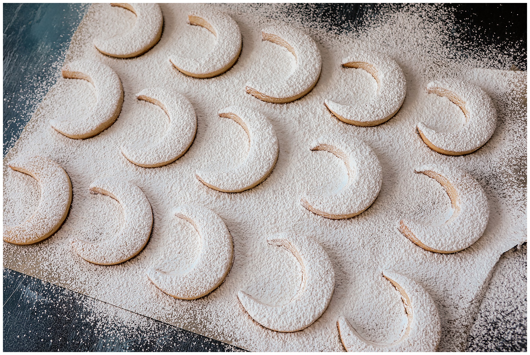 Don’t over-bake these. Really, they only need a short time in the oven to bake up nicely. I even found that the tips of my moon’s browned a little more than I had hoped.