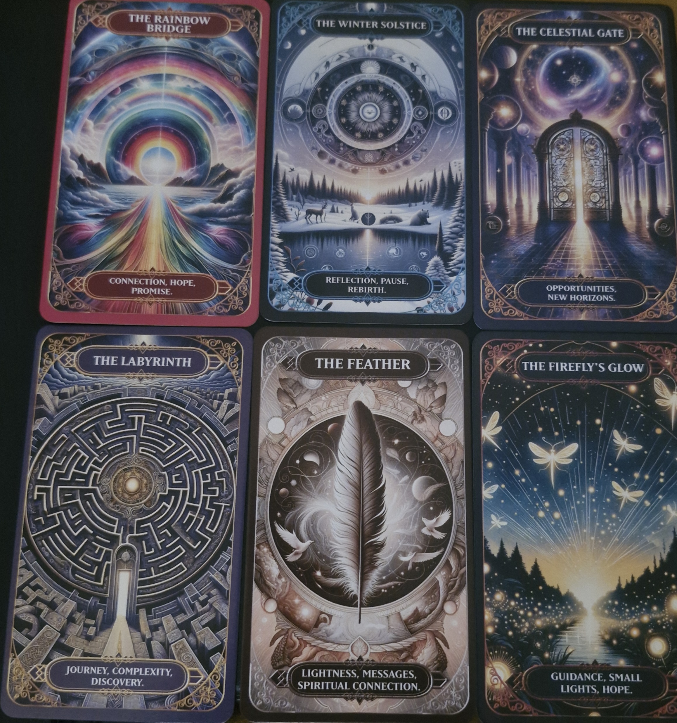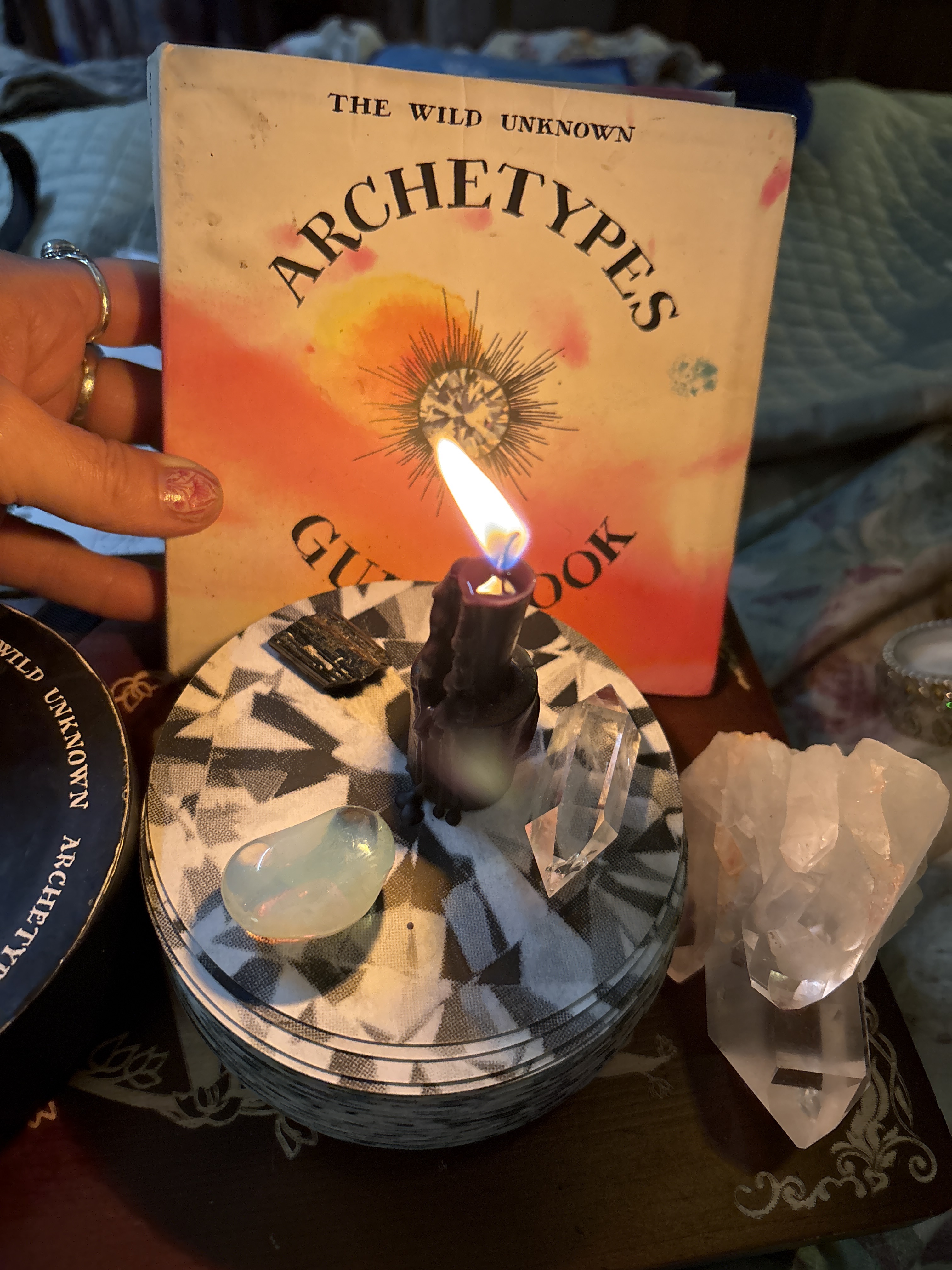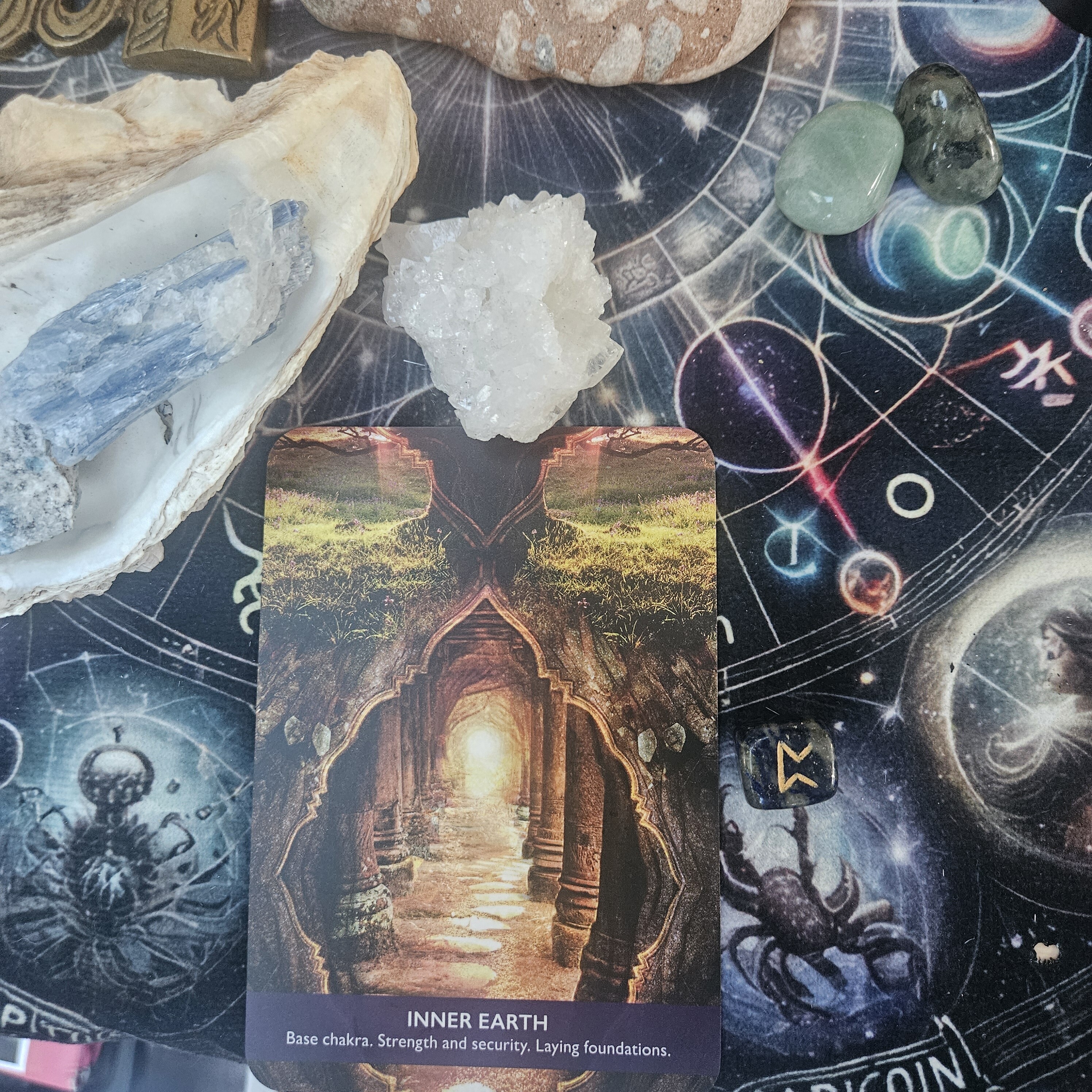 How deeply you delve into these questions, I leave to you. For example, on Day 1, you can focus on your root chakra, and/or your physical roots (home), ancestral roots… your foundations, do they need healing? Day 2, ask what do the cards say I feel more/less creative about, or what brings true pleasure vs fleeting joy, and so on.