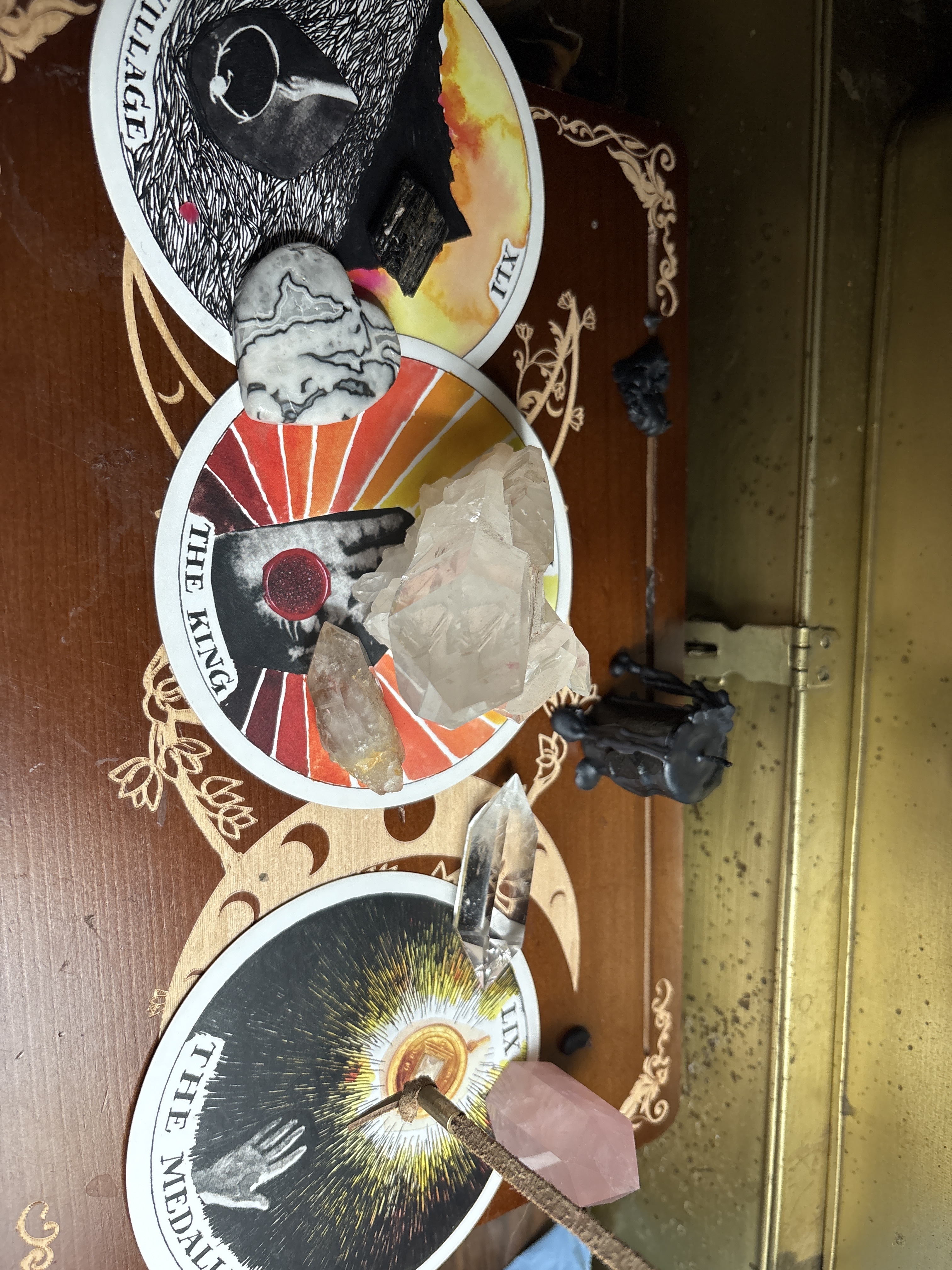 You can add a tarot layer, such as repeating the same spread with tarot, or asking additional questions specific to the tarot; similarly, you can use runes (Elder or Witch’s), Lenormand, etc. in the same way. You can also add a shadow layer; if you have shadow work oracle cards, you can pull the same number of cards to see what SW you could do to help the situation/your development. If you don’t have SW oracle cards, you can use tarot, another oracle deck, whatever you wish!
