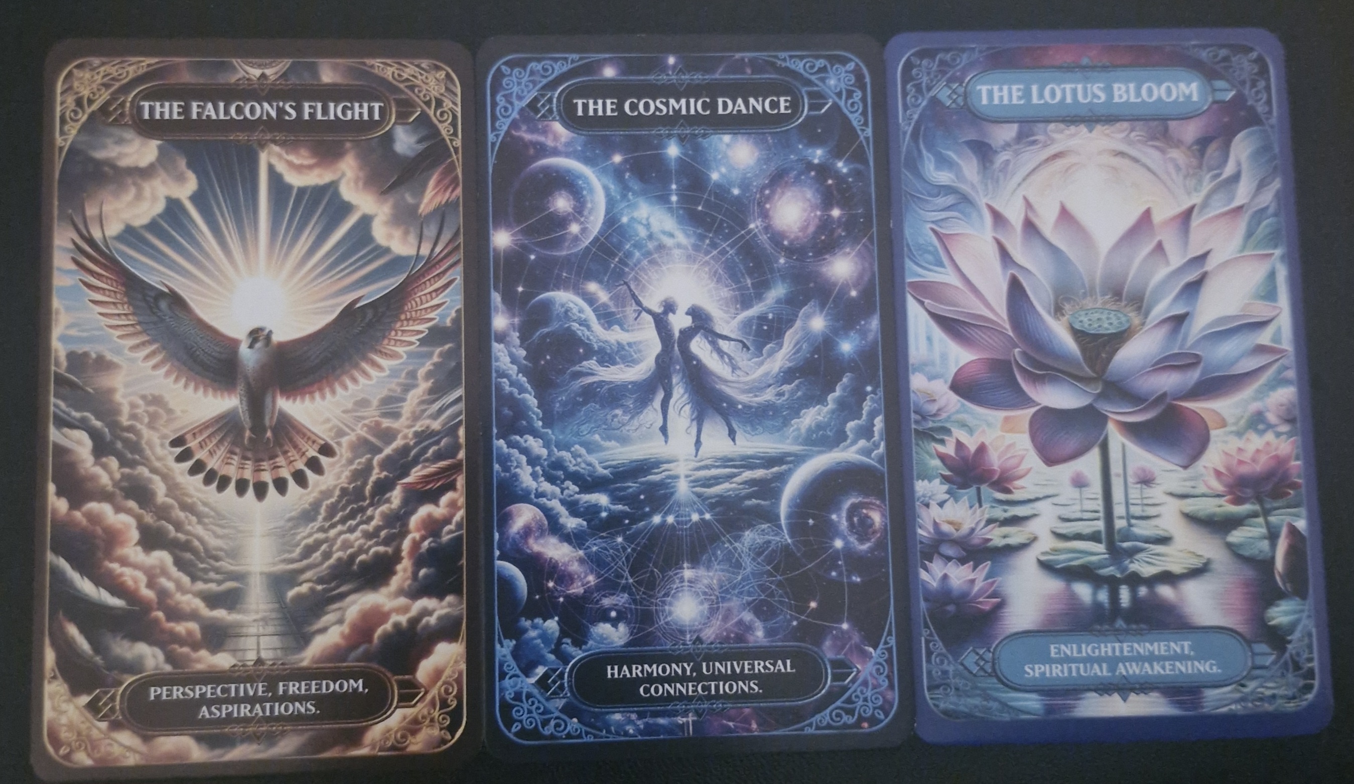 In this case, this card reminds me of The Magician tarot card; it feels like Terry will achieve his goal of unblocking his psychic connection and realise his true potential. The tiny stars feel like guidance from beyond the stars, perhaps he will connect with his guides and they will help him. The cloak also feels like a reminder for psychic protection, perhaps his journey will take him to unforseen corners of the cosmos, so it would be prudent to wrap himself in the protection of the Divine throughout his journey.