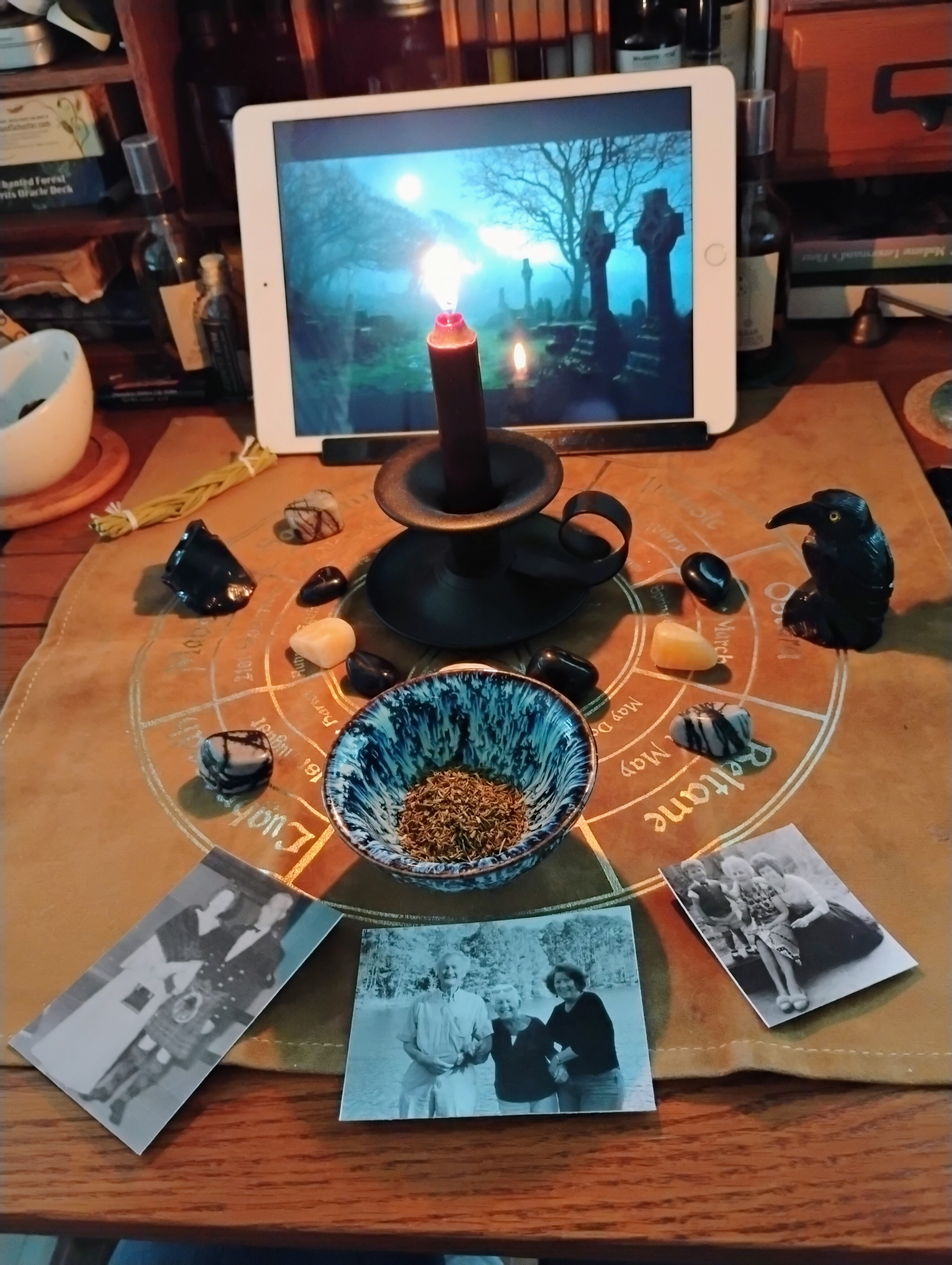 Allow the offering to remain on your altar for a day or two, then return it to the earth, if possible, with thanks. Carry the warmth of your ancestors’ memory with you as Samhain continues.