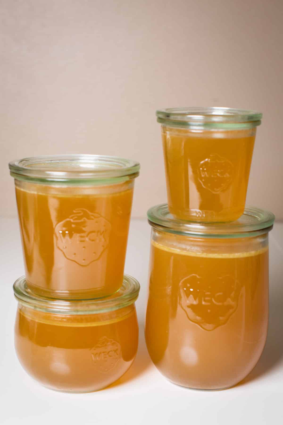 Let the broth cool for about an hour on the counter before handling; this will prevent burns.
