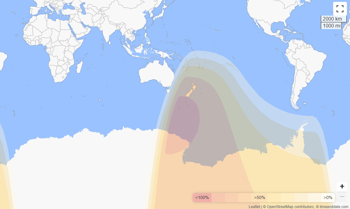 We have another eclipse this month! Since it’s the New Moon, this will be a Solar Eclipse – that means that the moon will pass in front of the sun during the day, blocking out the light for the regions that will be able to see it. This is only a partial eclipse, so unless you live in New Zealand or Antarctica, the eclipse will not be visible to you.