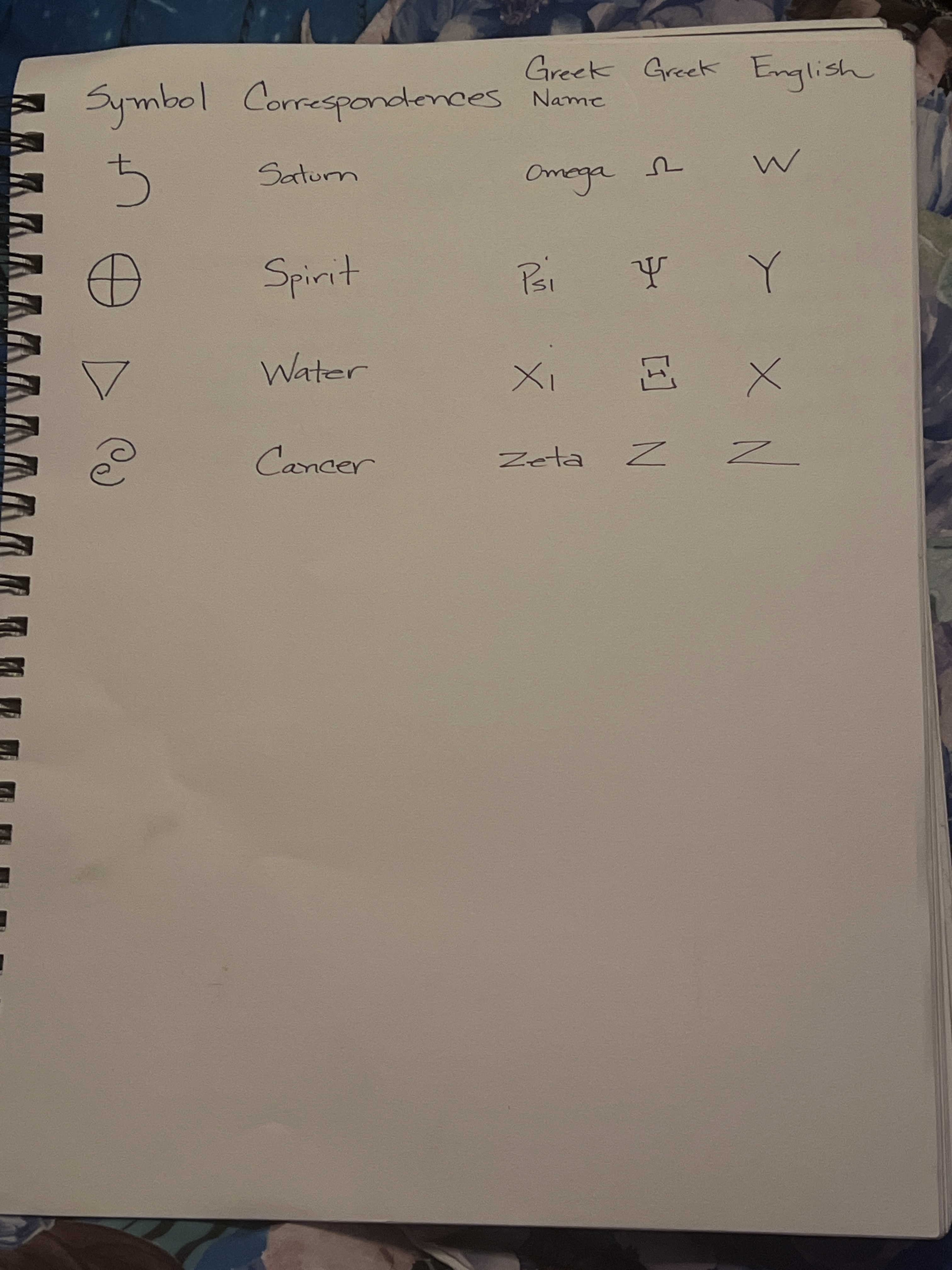 Also some symbols, correspondences and Greek Names
